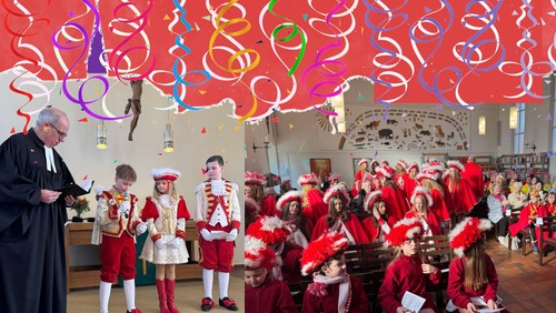 Lustig ging es wieder zu beim diesjährigen Karnevals-Gottesdienst in der Christuskirche. Das Kinder-Dreigestirn Prinz Lukas, Funkenmariechen Maja und Johann Mattia hatten ihr Gefolge mitgebracht. Zu Beginn zogen alle Gruppen der Steversterne ein.