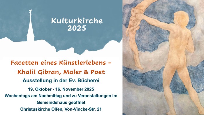 Für diese Ausstellung wurde insgesamt 10 Bilder von Khalil Gibran ausgewählt – 5 davon aus dem „Propheten“. Auf einem Büchertisch ist eine Auswahl seiner lyrischen Werke zur Ansicht ausgestellt, die nach dem Ende der Ausstellung auch ausgeliehen werden können.