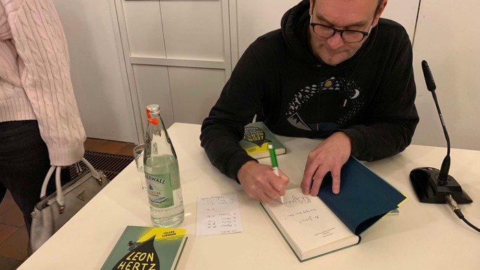 Am Schluss der Veranstaltung signierte Volker Surmann sein Buch. Mehrere Besucher wollten den Roman im Anschluss gern noch einmal in Gänze lesen.