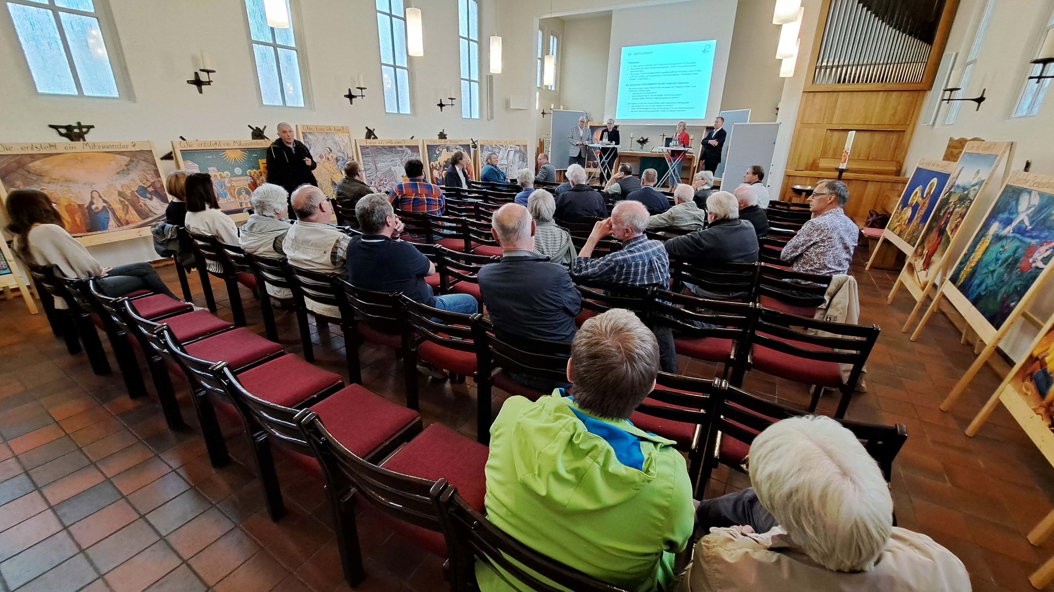 Vor- und Nachteile bzw. Konsequenzen der einzelnen Optionen wurden kontrovers diskutiert. Dabei wurde deutlich, wie eng die Gemeindemitglieder sich mit der Kirche und dem Gemeindezentrum verbunden fühlen. Vorgeschlagen wurde außerdem, dass auch eine "Option 0", d.h. eine Version nur mit Maßnahmen der Einnahmensteigerung, d.h. Vermietung bewertet werden sollte.